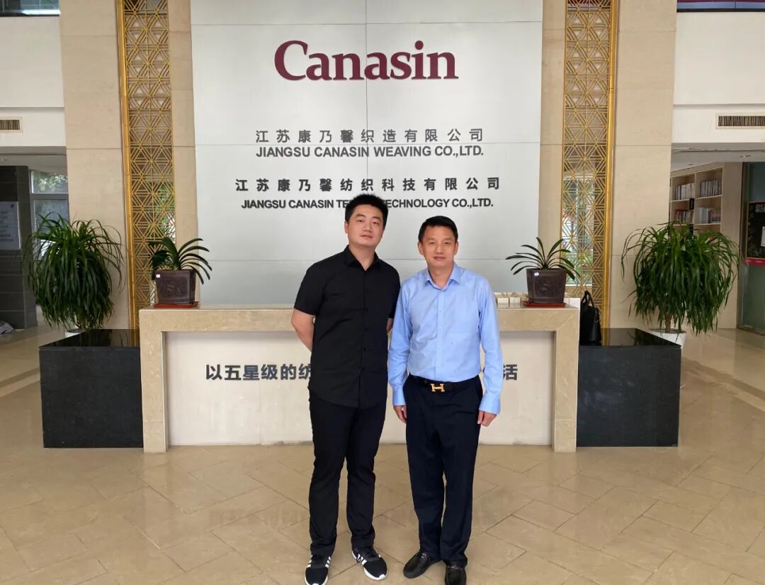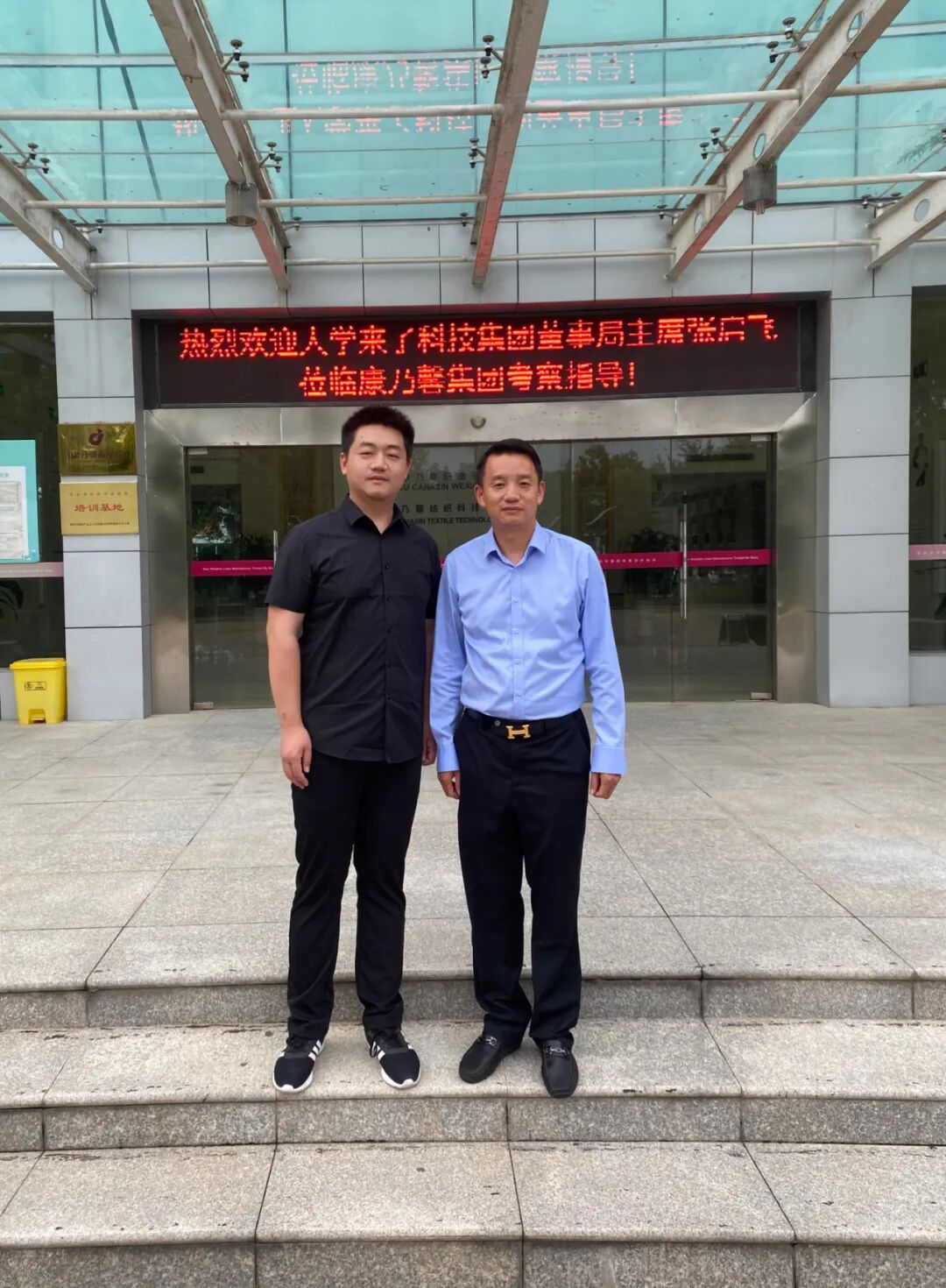 2022年8月31日,大学来了科技集团董事局主席张启飞先生走进江苏省著名织造品牌江苏康乃馨集团,受到江苏康乃馨集团副总裁王应黎先生的热烈欢迎与接待。